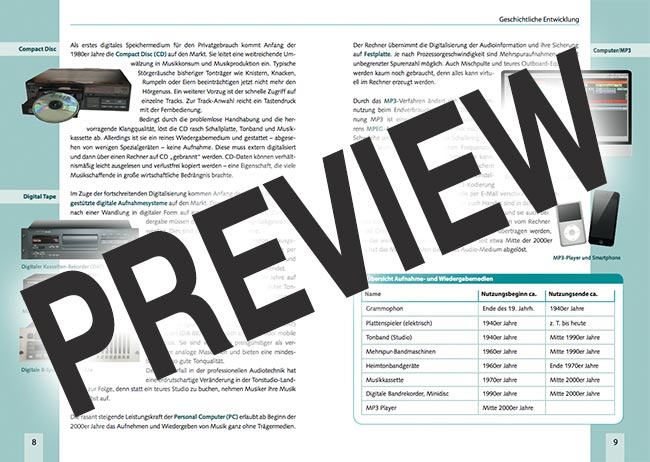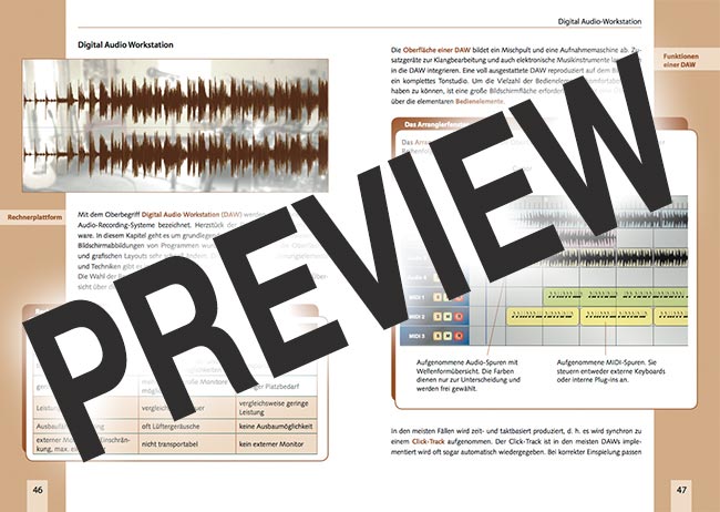 – Recherplatformen – Funktionen einer DAW – Copy-and-paste-Arrangement – Tempo und Takt – Audio-Recording – MIDI-Recording – MIDI-Events – Quantisierung – Methoden der Quantisierung – Vorteile und Nachteile von MIDI – Digitaler Schnitt – Überblendungen