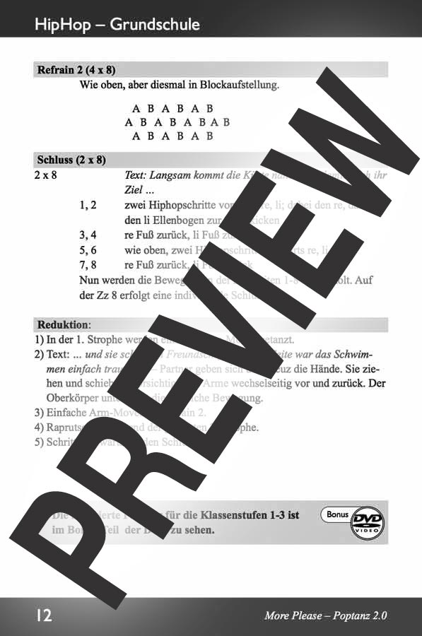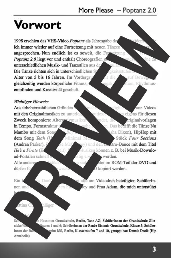 1998 erschien das VHS-Video Poptanz als Jahresgabe des AfS. Seit dem wurde ich immer wieder auf eine Fortsetzung mit neuen Tänzen und Choreografien angesprochen. Nun endlich ist es soweit, die Fortsetzung More Please – Poptanz 2.0 liegt vor und enthält Choreografien und Bewegungsbausteine zu unterschiedlichen Musik- und Tanzstilen aus dem populären Sektor.